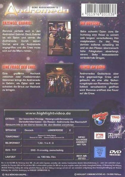 Erzengel GabrielRommie verliebt sich in den Androiden Gabriel. Doch Gabriel ist ein Spion und verrät die Andromeda. Durch seinen Verrat wird die Andromeda angegriffen und die Crew muss sich auf die Maru retten.Die OdysseeBeka schenkt Dylan zum Geburtstag eine Reise zu seinem seit langem verschollen Heimatplaneten. Da der Weg dorthin äußerst schwierig ist und an den Piloten übermenschliche Fähigkeiten abverlangt, nimmt Beka bewusstseinsverändernde Drogen.Eine Frage der EhreEine geplante Hochzeit zwischen zwei rivalisierende Stämmen bringt die Andromeda in Gefahr, als Dylan sich entscheidet die Braut zur Hochzeit zu bringen.Feinde an BordAndromedas Gedächtnis über ihre gegenwärtige Crew wird gelöscht als eine alte Sicherheitskopie von Rommies Persönlichkeit versehentlich geöffnet wird. Rommie eröffnet das Feuer auf die Crew.