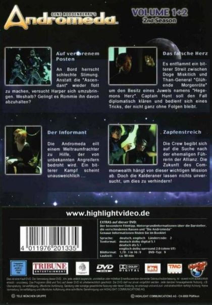 Auf verlorenem PostenAn Bord herrscht schlechte Stimmung. Anstatt die "Ascendant" wieder flott zu machen, versucht Harper sich umzubringen. Weshalb? Gelingt es Rommie, ihn davon abzuhalten?Das falsche HerzEs entflammt ein bitterer Streit zwischen Doge Miskitich und Than-General "Glühende Morgenröte" um den Besitz eines Juwels namens "Hegemons Herz". Captain Hunt soll den Fall diplomatisch klären und bedient sich eines Tricks, der nicht ganz ohne Folgen bleibt.Der InformantDie Andromeda eilt einem Weltraumfrachter zu Hilfe, der von unbekannten Angreifern bedroht wird. Ein bitterer Kampf scheint unasuweichlich...ZapfenstreichDie Crew begibt sich auf die Suche nach der ehemaligen Führerin der Allianz. Die Zukunft des Commonwealth hängt von dieser wichtigen Mission ab. Doch die Kalderaner lassen nichts unversucht, un dies zu verhindern!
