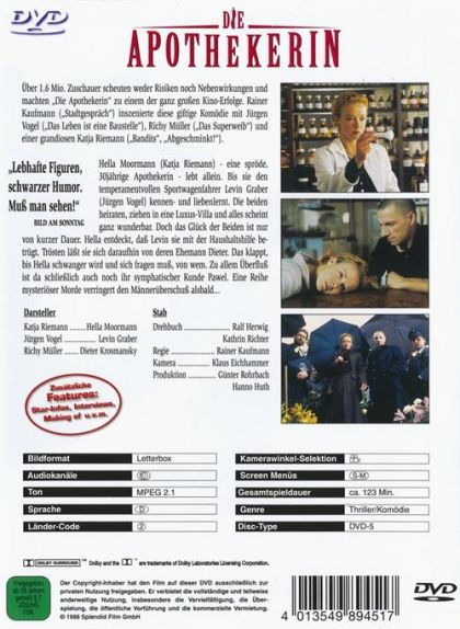 Hella Moormann (Katja Riemann) - eine spröde, 30jährige Apothekerin - lebt allein. Bis sie den temperamentvollen Sportwagenfahrer Levin Graber (Jürgen Vogel) kennen- und liebenlernt. Die beiden heiraten, ziehen in eine Luxus-Villa und alles scheint ganz wunderbar. Doch das Glück der Beiden ist nur von kurzer Dauer. Hella entdeckt, daß Levin sie mit der Haushaltshilfe betrügt. Trösten läßt sie sich daraufhin von deren Ehemann Dieter. Das klappt, bis Hella schwanger wird und sich fragen muß, von wem. Zu allem Überfluß ist da schließlich auch noch ihr sympathischer Kunde Pawel. Eine Reihe mysteriöser Morde verringert den Männerüberluß alsbald.