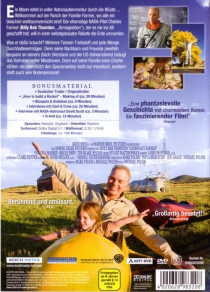 Ein Mann reitet in voller Astronautenmontur durch die Wüste ... Willkommen auf der Ranch der Familie Farmer, wo alle ein bisschen weltraumverrückt sind. Der ehemalige NASA-Pilot Charles Farmer (Billy Bob Thornton, "Armageddon"), der es nie ins All geschafft hat, will in einer selbstgebauten Rakete die Erde umrunden.Was er dafür braucht? Mehrere Tonnen Treibstoff und jede Menge Durchhaltevermögen. Denn seine Nachbarn und Freunde zweifeln langsam an seinem (Sach-)Verstand und der US-Geheimdienst beäugt das Vorhaben voller Misstrauen. Doch auf seine Familie kann Charlie zählen: sie unterstützt den Spacecowboy nicht nur moralisch, sondern stellt auch sein Bodenpersonal.