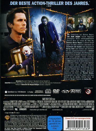Die Fortsetzung von Batman Begins, The Dark Knight, vereint Regisseur Christopher Nolan und Hauptdarsteller Christian Bale, der erneut die Rolle des Batman / Bruce Wayne in seinem Kampf gegen das Böse verkörpert. Unterstützt von Lieutenant Jim Gordon und Staatsanwalt Harvey Dent setzt Batman sein Vorhaben fort, das organisierte Verbrechen in Gotham endgültig zu zerschlagen. Das Dreiergespann erweist sich als effektiv. Doch bald sehen sie sich einem genialen, immer mächtiger werdenden Kriminellen gegenübergestellt, der als Joker bekannt ist: Er stürzt Gotham in ein anarchisches Chaos und zwingt Batman immer näher an die Grenze zwischen Gerechtigkeit und Rache. Heath Ledger ist als Batmans Erzfeind Joker zu sehen und Aaron Eckhart spielt Dent. Maggie Gyllenhaal übernimmt die Rolle der Rachel Dawes. Zurückgekehrt aus Batman Begins sind Gary Oldman als Jim Gordon, Michael Cain als Alfred und Morgan Freeman als Lucius Fox.