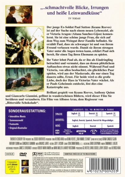 Der junge Ex-Soldat Paul Sutton (Keanu Reeves) ist auf der Suche nach einem neuen Lebensziel, als er Victoria Aragon (Aitana Sanchez-Gijon) kennenlernt. Sie ist eine schöne junge Frau, die sich auf dem Weg zum Weingut ihrer Familie befindet. Sie erzählt Paul, dass sie schwanger ist und von ihrem Freund verlassen wurde. Damit sie ihrem strengen Vater unter die Augen treten kann, erklärt Paul sich bereit, für einen Tag ihren Ehemann zu spielen.Ihr Vater lehnt Paul ab, da er ihn als Eindringling betrachtet und vermutet, dass an dessen plötzlichem Auftauchen etwas nicht stimmt. Während Paul und Victoria, von allen beobachtet, ein glückliches Paar spielen, wird aus der Maskerade, die nur einen Tag dauern sollte, Ernst. Für beide wird es die große Liebe, doch der Hass in Victorias Vater wächst. Als er Pauls Geheimnis entdeckt, löst dies eine Katastrophe aus.