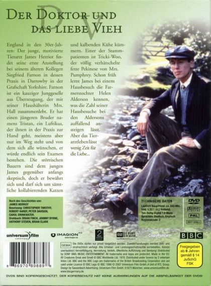 England in den 30er-Jahren: Der junge, motivierte Tierarzt James Herriot findet seine erste Anstellung bei seinem älteren Kollegen Siegfried Farnon in dessen Praxis in Darrowby in der Grafschaft Yorkshire. Farnon ist ein kauziger Junggeselle aus Überzeugung, der mit seiner Haushälterin Mrs. Hall zusammenlebt. Er hat einen jüngeren Bruder namens Tristan, ein Luftikus, der ihnen in der Praxis zur Hand geht, meistens aber nur im Weg steht und von dem sich alle wünschen, er würde endlich sein Examen bestehen. Die störrischen Bauern sind dem jungen James gegenüber anfangs skeptisch, doch er bewährt sich und darf sich um sämtliche kollabierenden Katzen und kalbenden Kühe kümmern. Einer der Stammpatienten ist Tricki-Woo, der völlig verhätschelte fette Pekinese von Mrs. Pumphrey. Schon früh lernt James bei einem Hausbesuch die Farmerstochter Helen Alderson kennen, was die Zahl seiner Hausbesuche bei den Aldersons auffallend ansteigen lässt. Aber das Tierarztleben lässt wenig Zeit für die Liebe...DVD101. Horse Sense02. Dog Days03. It Takes All KindsDVD204. Calf Love05. Out Of Practice06. Nothing Like ExperienceDVD307. Golden Lads And Girls08. Advice And Consent09. The Last FurlongDVD410. Sleeping Partners11. Bulldog Breed12. Practice Makes Perfect13. Breath Of Life