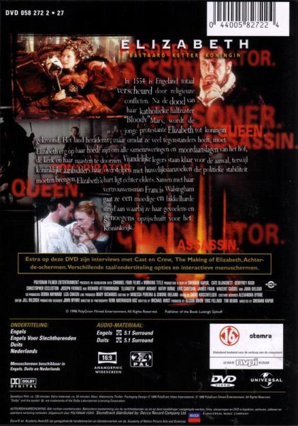 Eines der überwältigsten Kinoereignisse der letzten Jahre: Shooting-Star Shekhar Kapur inszenierte diesen atemberaubenden Kostüm-Thriller über den brutalen Weg Elisabeth I. von der wegen Verrats angeklagten Prinzessin zur übermächtigen Herrscherin eines Weltreichs. Mit dem Golden Globe für die beste Hauptdarstellerin ausgezeichnet und für 7 Oscars nominiert, besticht 'Elisabeth' mit einem exzellenten Staraufgebot und opulenter Ausstattung. Ein Meilenstein der Filmgeschichte!England im Jahre 1554: Intrigen, Mord und Todschlag bestimmen das politische Klima Englands unter der Herrschaft der fanatischen Katholikin Queen Mary I. Selbst im Angesicht des Todes schreckt die unheilbar kranke Königin nicht vor einem vernichtenden Feldzug gegen die Protestanten zurück, bei dem auch ihre jüngere Halbschwester und Thronerbin Prinzessin Elisabeth in große Gefahr gerät. Marys verzweifelter Versuch, Elisabeth wegen Verrats hinrichten zu lassen, schlägt fehlt. Nach Marys Tod zur Königin von England gekrönt, stößt Elisabeth auf erbitterten Widerstand bei ihren engsten Beratern. Als sie erfährt, daß selbst ihr Geliebter Robert Dudley sich mit ihren Gegnern verbündet hat, kennt sie kein Erbarmen mehr. Elisabeth schlägt gnadenlos zurück, um ihre Herrschaft zu sichern. Doch ihre Feinde sind vorbereitet...