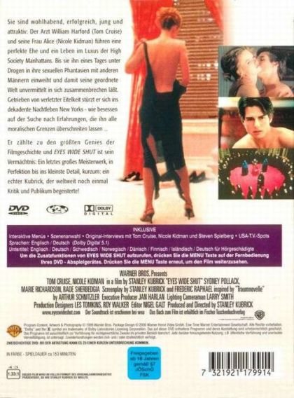 Sie sind wohlhabend, erfolgreich, jung und attraktiv: Der Arzt William Harford (Tom Cruise) und seine Frau Alice (Nicole Kidman) führen eine perfekte Ehe und ein Leben im Luxus der High Society Manhattans. Bis sie ihn eines Tages unter Drogen in ihre sexuellen Phantasien mit anderen Männern einweiht und damit seine geordnete Welt unvermittelt in sich zusammenbrechen läßt. Getrieben von verletzter Eitelkeit stürzt er sich ins dekadente Nachtleben New Yorks - wie besessen auf der Suche nach Erfahrungen, die ihn alle moralischen Grenzen überschreiten lassen...Er zählte zu den größten Genies der Filmgeschichte und EYES WIDE SHUT ist sein Vermächtnis: Ein letztes großes Meisterwerk, in Perfektion bis ins kleinste Detail, kurzum: ein echter Kubrick, der weltweit noch einmal Kritik und Publikum begeisterte!