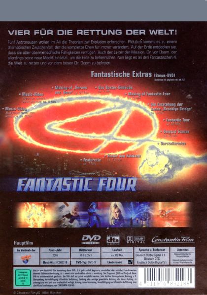 Fünf Astronauten wollen im All die Theorien zu Evolution erforschen. Plötzlich kommt es zu einem dramatischen Zwischenfall, der die komplette Crew für immer verändert. Auf der Erde entdecken sie, dass sie über übermenschliche Fähigkeiten verfügen. Auch der Leiter der Mission, Dr. von Doom, der allerdings seine neue Macht einsetzt, um die Erde zu beherrschen. Nun liegt es an den Fantastischen 4, die Welt zu retten und vor dem bösen Dr. Doom zu befreien.