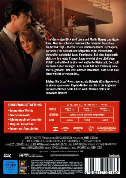 Auf den ersten Blick sind Laura und Martin Burney das ideale Paar. Aber das scheinbar harmonische Leben im Traumhaus am Strand trügt – Martin ist ein unberechenbarer Psychopath, der seine Frau seelisch und körperlich brutal misshandelt. Verzweifelt schmiedet Laura Fluchtpläne. Bei einer Segelpartie sieht sie ihre letzte Chance Laura erleidet einen „tödlichen Unfall“ und entflieht in eine weit entfernte Kleinstadt. Dort soll ihr neues Leben anfangen. Aber Laura hat ihre Rechnung ohne Martin gemacht. Der weiß nämlich inzwischen, dass seine Frau nicht wirklich ertrunken ist...Erleben Sie Oscar®-Preisträgerin Julia Roberts (Erin Brockovich) in einem spannenden Psycho-Thriller, der Sie in die Abgründe der menschlichen Seele führen wird. Wirklich nichts für schwache Nerven!