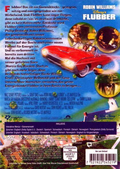 Flubber ! Das ist ein Gummiklecks - grasgrün, witzig und energiegeladen wie ein Wirbelwind. Und : Flubber kann sogar fliegen, denn sobald er/sie/es an etwas dranklebt, gibt es kein halten mehr. Entdeckt wird Flubber vom zerstreuten Professor Phillip Brainard, der gemeinsam mit seiner liebesbedürftigen Roboterassistentin Weebo auf der Suche nach einer neuen Formel für Energie ist. Und so verbummelt er bereits zum dritten Mal die Hochzeit mit seiner geliebten Sara. Doch es gibt noch mehr Ärger, denn Brainards hinterlistiger Rivale Wilson Croft und der fiese Unternehmer Hoenicker versuchen, das grüne Energiebündel Flubber in ihren Besitz zu bringen ...
