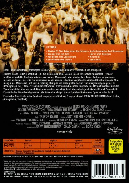 Oscar-Preisträger Denzel Washington in einer wahren Geschichte über Freundschaft und Teamgeist.Herman Boone (Denzel Washington) hat sich seinen neuen Job als Coach der Footballmannschaft "Titanen" leichter vorgestellt. Die Jungs spielen zwar in einer Mannschaft, aber sie sind kein Team. Doch um zu gewinnen, müssen sie lernen, dass sie nur gemeinsam siegen können. Allerdings vergiften Rivalität und Streitigkeiten die Stimmung in der Mannschaft. Mit hartem Training, Disziplin und einer großen Portion Einfühlungsvermögen gelingt es Boone jedoch die "Titanen" zusammenzuschweißen. Trotz unterschiedlicher Hautfarbe und Herkunft zeichnet sich das Team schließlich nicht nur durch Siege aus, sondern vor allem durch Mannschaftsgeist, Solidarität und Freundschaft. Eigenschaften die notwendig werden, als Boone den Intrigen einiger Sportfunktionäre zum Opfer zu fallen droht.Eine wahre Geschichte, mitreißend und temporeich verfilmt von Erfolgsproduzent Jerry Bruckheimer (Pearl Harbor, Armageddon, The Rock).