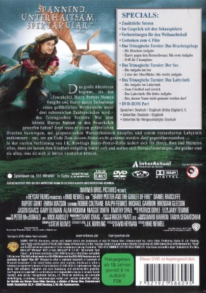 Das große Abenteuer beginnt, als der Feuerkelch Harry Potters Namen freigibt und Harry damit Teilnehmer eines gefährlichen Wettbewerbs unter drei ruhmreichen Zauberschulen wird - des Trimagischen Turniers. Wer aber könnte Harrys Namen in den Feuerkelch geworfen haben? Jetzt muss er einen gefährlichen Drachen bezwingen, mit gespenstischen Wasserdämonen kämpfen und einem verzauberten Labyrinth entkommen - nur, um am Ende Dem-dessen-Name-nicht-genannt-werden-darf gegenüberzustehen ...In der vierten Verfilmung von J.K. Rowlings Harry-Potter-Reihe ändert sich für Harry, Ron und Hermine alles, denn sie lassen ihre Kindheit endgültig hinter sich und stellen sich Herausforderungen, die größer sind als alles, was sie sich je hätten vorstellen können.