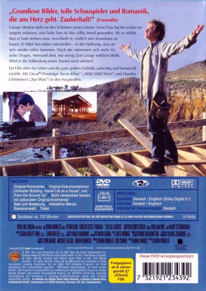 George Monroe steht vor den Scherben seines Lebens. Seine Frau hat ihn schon vor langem verlassen, sein Sohn Sam ist ihm völlig fremd geworden. Als er erfährt, dass er bald sterben muss, beschließt er, endlich sein Traumhaus zu bauen. Er bittet Sam dabei mitzuhelfen – in der Hoffnung, dass sie sich wieder näher kommen. Doch der interessiert sich mehr für seine Drogen. Niemand ahnt, wie wenig Zeit George wirklich bleibt. Wird er die Vollendung seines Traums noch erleben?Ein Film über das Leben und die ganz großen Gefühle, aufrichtig und humorvoll erzählt. Mit Oscar®-Preisträger Kevin Kline ("Wild Wild West") und Hayden Christensen ("Star Wars") in den Hauptrollen.