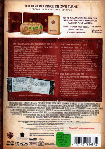 Die Gefährten gehen getrennte Wege, doch verfolgen sie weiterhin ihr Ziel: die Zerstörung des einen Rings, Frodo und Sam sind gezwungen, Gollum ihr Leben anzuvertrauen, um den Weg nach Mordor zu finden. Während Sarumans Heer vorrückt, bereiten sich die restlichen Gefährten zusammen mit den Menschen und übrigen Bewohnern von Mittelerde auf die Schlacht vor. Der Krieg der Ringe hat begonnen.Mit 42 Zusätzlichen Filmminuten: Neue und erweiterte Szenen von Regisseur Peter Jackson.