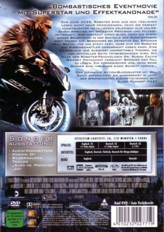 Das Jahr 2035. Roboter sind aus dem täglichen Leben nicht mehr wegzudenken, denn die perfekt konstruierten Metallwesen erledigen alle unliebsamen Arbeiten mit grösster Präzision und Hilfsbereitschaft. Man vertraut ihnen blind, doch ein mysteriöser Selbstmord in der Zentrale der Roboter-Fabrik wirft Fragen auf. Besonders bei Detective Del Spooner (Will Smith), für ihn steht fest, dass nur ein Roboter den Wissenschaftler umgebracht haben kann. Eine gefährliche und äusserst unprofitable Theorie, die von offizieller Seite totgeschwiegen wird. Mit Hilfe der Roboter-Psychologin Dr. Susan Calvin (Bridget Moynahan) versucht Spooner den Fall zu lösen. Ein mörderischer Job, denn seine Gegner sind ihm immer einen Schritt voraus ...