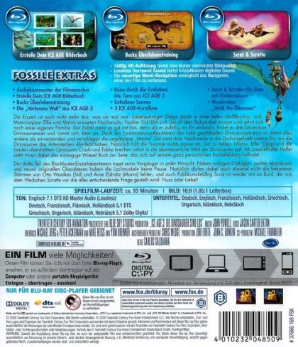 Die Eiszeit ist auch nicht mehr das, was sie mal war: Säbelzahntiger Diego steckt in einer tiefen Midlife Crisis und Mammutpaar Ellie und Manni erwarten Nachwuchs. Faultier Sid fühlt sich bei all dem Babytrubel einsam und sehnt sich nach einer eigenen Familie. Der Zufall meint es gut mit ihm, denn als er zufällig ins Eis einbricht, findet er drei herrenlose Dinosaurier-Eier und nimmt sich ihrer an. Doch die Tyrannosaurus Rex-Mama der bald geschlüpften Dinosaurierbabys ist damit alles andere als einverstanden und verschleppt die ungebetene Mama Sid samt dem Nachwuchs in die Dschungelwelt unterm Eis, wo die Dinosaurier das Artensterben überlebt haben. Natürlich hält nichts die Freunde davon ab, Sid zu helfen: Manni, Ellie, Diego und die beiden überdrehten Opossums Crash und Eddie brechen sofort in die abenteuerliche Welt der Dinosaurier auf. Als zweifelhafter Helfer steht ihnen dabei das einäugige Wiesel Buck zur Seite, das sich auf seinem ganz persönlichen Rachefeldzug befindet...Der dritte Teil des Blockbuster-Eiszeitabenteuers toppt seine Vorgänger in jeder Hinsicht: Neben witzigen Dialogen, coolen Abenteuern und neuen originellen Charakteren haben die Lachmuskeln keine Pause. Natürlich dürfen dabei auch diesmal nicht die bekannten Stimmen von Otto Waalkes (Sid) und Arne Elsholtz (Manni) fehlen und auch Publikumsliebling Scrat ist wieder mit an Bord, der von dem Weibchen Scratte vor die alles entscheidende Frage gestellt wird: Nuss oder Liebe?
