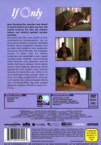 Sexy Shooting Star Jennifer Love Hewitt in einem Drama um Liebe und Tod. Die zweite Chance: Für alle, die wirklich lieben und wirklich geliebt werden möchten.Samantha (Jennifer Love Hewitt) ist eine amerikanische Musikstudentin, die an einer renommierten Londoner Universtät studiert. Sie ist sorgenfrei, implusiv und vor allem total verliebt in ihren englischen Freund Ian (Paul Nicholls). Ian hingegen scheint in erster Linie mit seinem fordernden Job verheiratet zu sein, vergisst darüber seine Gefühle, vernachlässigt seine Freundin und übersieht, dass er Gefahr läuft sie zu verlieren. Als ihr Leben jedoch eine tragische Wendung nimmt, gesteht sich Ian endlich seine wahren Gefühle für Samantha ein: Hätte er ihr doch bloß seine Liebe gezeigt. Wenn er doch nur alles ungeschehen machen, noch einmal von vorne anfangen könnte, dem schicksalhaften Tag eine andere Wendung verleihen. Könnte er doch nur ...If Only ...