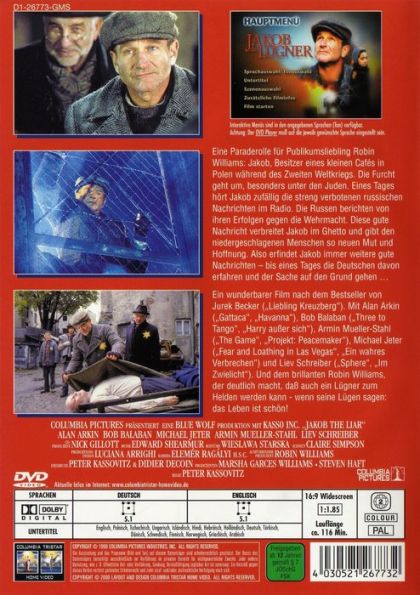 Eine Paraderolle für Publikumsliebling Robin Williams: Jakob, Besitzer eines kleinen Cafés in Polen während des Zweiten Weltkriegs. Die Furcht geht um, besonders unter den Juden. Eines Tages hört Jakob zufällig die streng verbotenen russischen Nachrichten im Radio. Die Russen berichten von ihren Erfolgen gegen die Wehrmacht. Diese gute Nachricht verbreitet Jakob im Ghetto und gibt den niedergeschlagenen Menschen so neuen Mut und Hoffnung. Also erfindet Jakob immer weitere gute Nachrichten – bis eines Tages die Deutschen davon erfahren und der Sache auf den Grund gehen ...Ein wunderbarer Film nach dem Bestseller von Jurek Becker („Liebling Kreuzberg“). Mit Alan Arkin („Gattaca“, „Havanna“), Bob Balaban („Three to Tango“, „Harry ausser sich“), Armin Mueller-Stahl („The Game“, „Projekt: Peacemaker“), Michael Jeter („Fear and Loathing in Las Vegas“, „Ein wahres Verbrechen“) und Liev Schreiber („Sphere“, „Im Zwielicht“). Und dem brillanten Robin Williams, der deutlich macht, dass auch ein Lügner zum Helden werden kann - wenn seine Lügen sagen: das Leben ist schön!