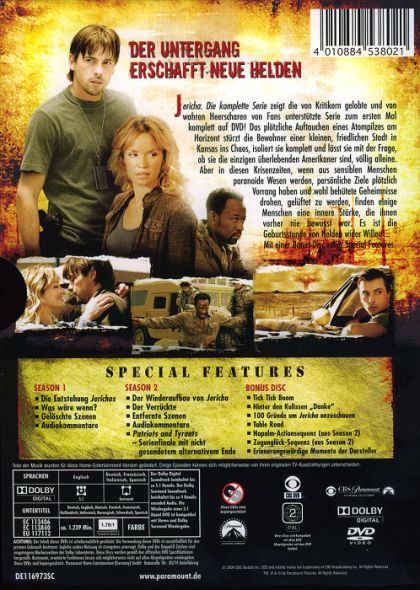 DER UNTERGANG ERSCHAFFT NEUE HELDENJericho: Die komplette Serie zeigt die von Kritikern gelobte und von wahren Heerscharen von Fans unterstützte Serie zum ersten Mal komplett auf DVD! Das plötzliche Auftauchen eines Atompilzes am Horizont stürzt die Bewohner einer kleinen, friedlichen Stadt in Kansas ins Chaos, isoliert sie komplett und lässt sie mit der Frage, ob sie die einzigen überlebenden Amerikaner sind, völlig alleine. Aber in diesen Krisenzeiten, wenn aus sensiblen Menschen paranoide Wesen werden, persönliche Ziele plötzlich Vorrang haben und wohl behütete Geheimnisse drohen, gelüftet zu werden, finden einige Menschen eine innere Stärke, die ihnen vorher nie bewusst war. Es ist die Geburtsstunde von Helden wider Willen ...