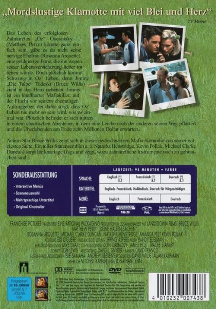 Das Leben des erfolglosen Zahnarztes "Oz" Oseransky (Matthew Perry) könnte ganz einfach sein, gäbe es da nicht seine nervige Ehefrau (Rosanna Arquette), eine geldgierige Furie, die ihn wegen seiner Lebensversicherung lieber tot sehen würde. Doch plötzlich kommt Schwung in Oz' Leben, denn Jimmy "Die Tulpe" Tudeski (Bruce Willis) zieht in das Haus nebenan. Jimmy ist ein knallharter Mafiakiller, auf der Flucht vor seinem ehemaligen Auftraggeber, der dafür sorgt, dass Oz' Leben nie mehr so sein wird, wie es einmal war. Plötzlich befindet er sich mitten in einem chaotischen Abenteuer, in dem eine Leiche nach der anderen seinen Weg pflastert und die Überlebenden am Ende zehn Millionen Dollar erwarten...Action-Star Bruce Willis zeigt sich in dieser pechschwarzen Mafia-Komödie von seiner witzigsten Seite. Ein tolles Starensemble (u. a. Natasha Henstridge, Kevin Pollak, Michael Clarke Duncan) sorgt für knackige Gags und zeigt, wozu zahnärztliche Instrumente noch zu gebrauchen sind...