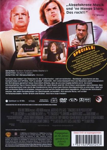 Sei Zeuge der Geburt von Tenacious D, der großartigsten - und verrücktesten - Rockband "auserkoren um das lustigste Epos seit SPINAL TAP zu werden" (MAXIM). Mit vielen Gastauftritten von Rockstars und Schauspielern der Extraklasse garantiert diese Zwerchfell-Attacke, dass du um eine Zugabe betteln wirst. An einem schicksalhaften Tag in Venice Beach treffen JB (Jack Black) and KG (Kyle Gass) aufeinander und erkennen, dass sie vorherbestimmt sind, durch das Kombinieren ihres jeweiligen Genies Musikgeschichte zu schreiben. Aber um den verdienten Ruhm zu erlangen, müssen sie sich auf die Suche nach dem legendären "Plektron des Schicksals" machen, das jeden Karaokesänger zur Rocklegende verwandelt. Ihre epische Reise, voll wilder Verfolgungsjagden, heisser Bräute und Bigfoot, lässt kein Auge trocken!