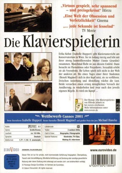 Erika Kohut (Isabelle Huppert) gibt Klavierunterricht am Konservatorium in Wien. Sie ist Anfang vierzig und lebt mit ihrer streng kontrollierenden Mutter (Annie Girardot) zusammen. Machmal flieht sie aus diesem Umfeld. Dann besucht sie Pornokinos oder Peepshows. Sexualität erlebt sie als Voyeuristin. Ihr Leben spielt sich nicht in der Welt der anderen ab. Bis eines Tages einer ihrer Studenten (Benoît Magimel) sich in den Kopf setzt, sie zu verführen. Zwischen Anziehung und Abstoßung wächst die Lust. Beide versuchen einen ersten missglückten Versuch der Annäherung zu wiederholen und zwar nach den jeweils eigenen Regeln. Es wird ein Kampf ...
