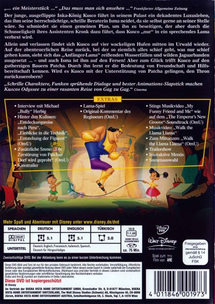 Der junge, ausgeflippte Inka-König Kusco führt in seinem Palast ein dekadentes Luxusleben, das ihm seine herrschsüchtige, schrille Beraterin Isma neidet, da sie selbst gerne an seiner Stelle wäre. So schmiedet sie einen gemeinen Plan, um ihn zu beseitigen, der aber durch die Schusseligkeit ihres Assistenten Kronk dazu führt, dass Kusco "nur" in ein sprechendes Lama verhext wird.Allein und verlassen findet sich Kusco auf vier wackeligen Hufen mitten im Urwald wieder. Auf der abenteuerlichen Reise zurück, bei der so ziemlich alles schief geht, was nur schief gehen kann, sieht sich das "Anfänger-Lama" reißenden Wasserfällen und wilden Jaguarbanden ausgesetzt ... - und auch Isma ist ihm auf den Fersen! Aber zum Glück trifft Kusco auf den gutherzigen Bauern Patcha. Durch ihn lernt er die Bedeutung von Freundschaft und Hilfsbereitschaft kennen. Wird es Kusco mit der Unterstützung von Patcha gelingen, den Thron zurückzuerobern?