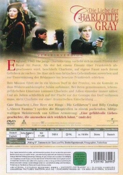 England, 1943: Die junge Charlotte Gray verliebt sich in einen Piloten der Royal Airforce. Als der bei einem Einsatz über Frankreich abgeschossen wird, beschliesst Charlotte auf eigene Faust nach ihrem Geliebten zu suchen: Sie lässt sich vom britischen Geheimdienst anwerben und zur Unterstützung der Résistance ins besetzte Frankreich schicken.Ihre Mission führt sie in ein kleines Dorf in der Provinz, wo sie Kontakt zu dem Widerstandskämpfer Julien aufnimmt. Bei ihren gemeinsamen, lebensgefährlichen Einsätzen kommen Charlotte und Julien einander immer näher. Und als Julien schließlich auf der Flucht vor der Gestapo das Dorf verlassen muss, steht Charlotte vor einer dramatischen Entscheidung ...