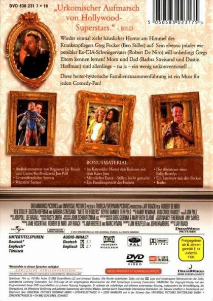 Wieder einmal zieht häuslicher Horror am Himmel des Krankenpflegers Greg Focker (Ben Stiller) auf: Sein ebenso prüder wie penibler Ex-CIA-Schwiegervater (Robert De Niro) will unbedingt Gregs Eltern kennen lernen! Mom und Dad (Barbra Streisand und Dustin Hoffman) sind allerdings - na ja - ein wenig unkonventionell ...Diese heiter-hysterische Familienzusammenführung ist ein Muss für jeden Comedy-Fan!