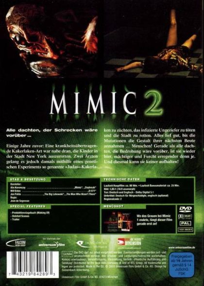 Alle dachten, der Schrecken wäre vorüber... Einige Jahre zuvor: Eine krankheitsübertragende Kakerlaken-Art war nahe dran, die Kinder in der Stadt New York auszurotten. Zwei Ärzten gelang es jedoch damals mithilfe eines genetischen Experiments sogenannte "Judas"-Kakerlaken zu züchten, das infizierte Ungeziefer zu töten und die Stadt zu retten. Alles lief gut, bis die Mutationen die Gestalt ihrer nächsten Beute annahmen - Menschen! Gerade als alle dachten, die Bedrohung wäre vorüber, ist sie wieder hier, mächtiger und Furcht erregender denn je. Und diesmal kann sie keiner aufhalten!