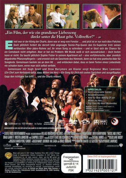 Einst war er der König der Charts, dann war er weg vom Fenster ... und jetzt ist er nur noch Alex Fletcher. Doch plötzlich fordert die derzeit total angesagte Teenie-Pop-Queen den Ex-Superstar trotz seines verblassten 80er-Jahre-Ruhms auf, ihr einen Song zu schreiben - und er lässt sich die Chance für ein Comeback nicht entgehen. Aber er hat ein Problem: Mit Musik weiss er sich auszudrücken - doch texten kann er nicht. Da taucht plötzlich Sophie Fisher in seinem Apartment auf - eine verführerische, aber ziemlich abgedrehte Pflanzenpflegerin - und erweist sich als Geschenk des Himmels, denn sie hat eine poetische Ader für Songtexte. Gemeinsam basteln sie an dem Hit ... und entdecken dabei, dass es beim Texten eines Liebeslieds nie schaden kann, wenn man sich selbst verliebt.