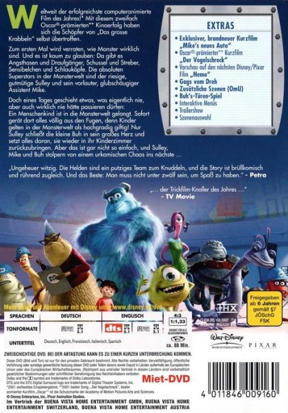 In der Monster-AG-Fabrik gehen Monster aller Größen und Arten ihrer angsterregenden Arbeit nach: Über Schranktüren gelangen sie in Kinderzimmer rund um die Welt und sammeln die Angstschreie ihrer Bewohner. Die liefern den Strom für Monstropolis. Star unter den Schreckeinjagern ist Sulley. Als er eines Tages mit dem kleinen Mädchen Boo in seinem Fell verkrallt zurückkehrt, bricht Chaos aus...
