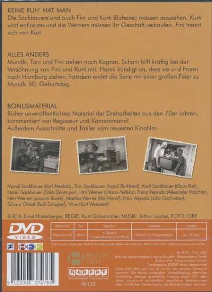 Keine Ruh' hat man:Die Sackbauers und auch fini und Kurti Blahovec müssen ausziehen. Kurti wird entlassen und die Werners müssen ihr Geschäft verkaufen. Fini trennt sich von Kurt.Alles anders:Mundls, Toni und Fini ziehen nach Kagran. Schani hilft kräftig bie der Versöhnung von Fini und Kurti mit. Hanni kündigt an, dass sie und Franzi nach Hamburg ziehen. Trotzdem endet die Serie mit einer großen Feier zu Mundls 50. Geburtstag.Bonusmaterial:Bisher unveröffentlichtes Material der Dreharbeiten aus den 70er Jahren, kommentiert von Regisseur und Kameramann!Außerdem Ausschnitte und Trailer vom neuesten Kinofilm.