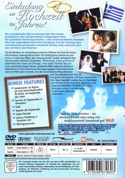 Der sensationelle Überraschungs-Hit! Tom Hanks produzierte den erfolgreichsten Independent-Film der gesamten US-Kinogeschichte - eine leidenschaftliche Komödie über die unglaublich komischen Ereignisse bei der Planung einer amerikanisch-griechischen Hochzeit. Deftig, rüde und laut, aber mit viel Herz und Charme!Das Verfallsdatum für heiratsfähige griechische Mädchen hat Toula Portokalos (Nia Vardalos) eindeutig überschritten. Mit dreißig Jahren arbeitet sie noch immer im Lokal ihrer Eltern, dem 'Dancing Zorbas'. Zudem verlangt ihr Vater Gus Portokalos (Michael Constantine) - Oberhaupt eines griechisch-amerikanischen Clans aus Chicago - von seiner Tochter, dass sie einen griechischen Jungen heiratet, griechische Babys bekommt und bis ans Lebensende am Herd steht. Doch eines Tages begegnet Toula ihrem Traummann Ian Miller (John Corbett). Aus dem unscheinbaren Mauerblümchen wird eine selbstbewusste Frau, die ihre große Liebe heiraten will. Doch wie soll Toula ihrer Sippe begreiflich machen, dass ihr Zukünftiger kein Grieche ist? Für ihren Vater gibt es nur zwei Arten von Menschen: 'Griechen und solche, die es gern wären' - und das macht es den beiden Liebenden nicht leicht ...