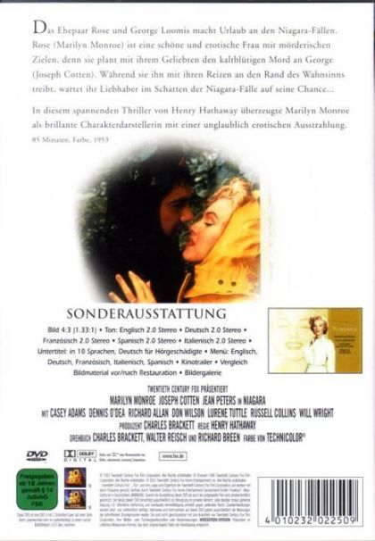 Der dramatische Hintergrund der tosenden Niagara-Fälle ist nichts gegen die wilde Kraft von Rose (Marilyn Monroe), die ihre beiden schärfsten Waffen - ein erotischer Körper und ein mörderischer Charakter - für ihre eigenen Zwecke benutzt. Der Mordplan an ihrem Ehemann (Joseph Cotten) ist raffiniert genug eingefädelt: Mit erotischem Feuer und eiskalter Perfidie bringt Rose ihr Opfer an den Rand des nackten Wahnsinns, während der geheime Liebhaber im Schatten auf seine Chance wartet...