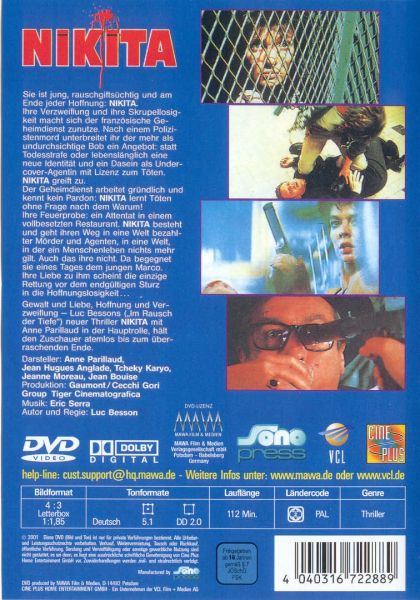 Sie ist jung, rauschgiftsüchtig und am Ende jeder Hoffnung: NIKITA.Ihre Verzweiflung und ihre Skrupellosigkeit macht sich der französische Geheimdienst zunutze. Nach einem Polizistenmord unterbreitet ihr der mehr als undurchsichtige Bob ein Angebot: statt Todesstrafe oder lebenslänglich eine neue Identität und ein Dasein als Undercover-Agentin mit Lizenz zum Töten. NIKITA greift zu.Der Geheimdienst arbeitet gründlich und kennt kein Pardon: NIKITA lernt Töten ohne Frage nach dem Warum!Ihre Feuerprobe: ein Attentat in einem vollbesetzten Restaurant. NIKITA besteht und geht ihren Weg in eine Welt bezahlter Mörder und Agenten, in eine Welt, in der ein Menschenleben nichts mehr gilt. Auch das ihre nicht. Da begegnet sie eines Tages dem jungen Marco. Ihre Liebe zu ihm scheint die einzige Rettung vor dem endgültigen Sturz in die Hoffnungslosigkeit...Gewalt und Liebe, Hoffnung und Verzweiflung - Luc Bessons ("Im Rausch der Tiefe") neuer Thriller NIKITA mit Anne Parillaud in der Hauptrolle, hält den Zuschauer atemlos bis zum überraschenden Ende.