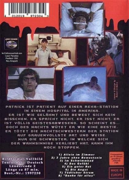 Patrick ist Patient auf einer Reha-Station in einem Hospital in Amerika. Er ist wie gelähmt und bewegt sich kein bisschen. Er spricht nicht. Er isst nicht. Er ist völlig geistesabwesend. So scheint es... Doch des Nachts wütet er wie eine Bestie. Er tötet die Nachtschwester der Station auf grauenvollste Art und Weise. Nur die Schwester, in welche sich der Wahnsinnige verliebt hat, kann ihn noch stoppen.