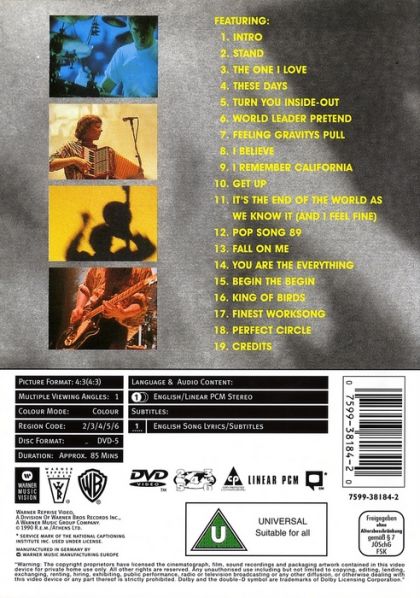 Featuring:- Stand- The One I Love- These Days- Turn You Inside-Out- World Leader Pretend- Feeling Gravity's Pull- I Believe- I Remember California- Get Up- It's The End Of The World As We Know It (And I Feel Fine)- Pop Song 89- Fall On Me- You Are Everything- Begin The Begin- King Of Birds- Finest Worksong- Perfect Circle