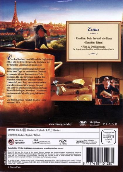 Remy, eine ungewöhnliche junge Ratte träumt davon, eines Tages ein renommierter Chefkoch in einem der feinsten Restaurants von Paris zu werden. Hin- und hergerissen zwischen den Wünschen seiner Familie und seiner wahren Leidenschaft, setzt Remy zusammen mit seinem neuen Freund dem Küchenjungen Linguini, eine Kette von urkomischen Ereignissen in Gang. Ratatouille ist ein ganz besonderer Leckerbissen, von dem man einfach nicht genug bekommen kann!
