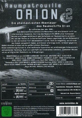Wir schreiben das Jahr 3000... Eine Weltraumflotte schützt die Menschheit und ihre Kolonien im All vor interstellaren Invasoren. Die Crew des Raumschiffs ORION unter Commander McLane wird wegen befehlswidrigen Verhaltens zur Raumpatrouille versetzt. Mit von der Partie ist Sicherheitsoffizier Tamara Jagellovsk, die als Aufpasserin zu den verrückten Fünf abkommandiert wurde. Doch so langweilig, wie sie sich den Dienst vorgestellt haben, wird dieser allerdings nicht: Im Kampf gegen die Außerirdischen erleben sie die gefährlichsten Abenteuer...Folge 5Der Kampf um die Sonne ca. 60 Min. Sonneneruptionen bedrohen das Klima der Erde. Diese werden von dem von Frauen beherrschten Planeten Chroma aus gesteuert. Bevor es zum Krieg kommt, verzichtet die Herrscherin von Chroma - auch aus Zuneigung zu Commander McLane - auf weitere Sonnenexperimente.Folge 6Die Raumfalle ca. 63 Min. Verbannte auf dem Planeten MURA versuchen vergeblich die ORION in ihre Gewalt zu bekommen, um mit ihr zu flüchten.Folge 7Invasion ca. 59 Min.Die geplante Invasion der Frogs mit Hilfe des 'umgedrehten' Oberst Villa kann durch Overkill-Einsatz vereitelt werden. McLane wird zum Oberst befördert, die Strafversetzung der ORION aufgehoben,... und Tamara Jagellovsk will auch weiterhin (privat) auf McLane 'aufpassen.