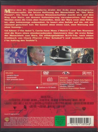 Mitte des 21. Jahrhunderts droht der Erde eine ökologische Katastrophe. Die letzte Hoffnung der Menschheit ist "Der Rote Planet". Ein Team der besten Wissenschaftler macht sich auf den Weg zum Mars, um dessen Kolonisierung vorzubereiten. Auf ihrer Mission muss die Crew aber feststellen, dass der Mars zwar eine Wüste ist, aber keinesfalls unbewohnt. Es lauert eine Gefahr auf sie, mit der niemand gerechnet hat: Sie kommt ohne einen Laut, eine Warnung und ohne Ausweg...Val Kilmer ("The Saint"), Carrie-Anne Moss ("Matrix") und Tom Sizemore sind die Stars eines atemberaubenden Abenteuers über die erste Reise der Menschheit zum Mars. Ein effektgeladener Sci-Fi-Trip, nach einem Drehbuch von Chuck Pfarrer ("Der Schakal") und Jonathan Lenkin ("Im Auftrag des Teufels").