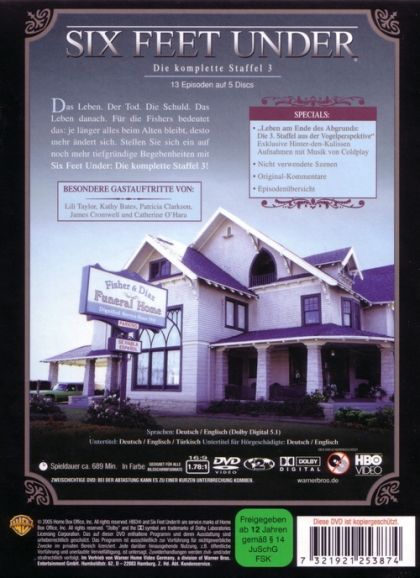 Das Leben. Der Tod. Die Schuld. Das Leben danach. Für die Fishers bedeutet das: je länger alles beim Alten bleibt, desto mehr verändert sich. Stellen sie sich ein auf noch mehr tiefgründige Begebenheiten mit "Six Feet Under: Die komplette Staffel 3"!