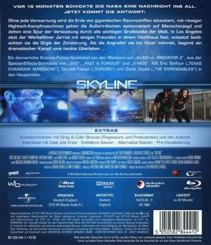 Vor 16 Monaten schickte die NASA eine Nachricht ins All.Jetzt kommt die Antwort:Ohne jede Vorwarnung wird die Erde von gigantischen Raumschiffen attackiert, mit riesigen Hightech-Kampfmaschinen gehen die Außerirdischen systematisch auf Menschenjagd und ziehen eine Spur der Verwüstung durch alle wichtigen Großstädte der Welt. In Los Angeles sitzt der Werbefilmer Jarrod mit einigen Freunden in einem Hochhaus fest, entsetzt beobachten sie die Orgie der Zerstörung. Als die Angreifer sie ins Visier nehmen, beginnt ein dramatischer Kampf ums nackte Überleben ...Ein donnerndes Science-Fiction-Spektakel von den Machern von „ALIEN vs PREDATOR 2“, aus der Special-Effects-Schmiede von „300“, „FAST & FURIOUS“ und „X-MEN“. Mit Eric Balfour („TEXAS CHAINSAW MASSACRE“), Donald Faison („SCRUBS“) und David Zayas („THE EXPENDABLES“) in den Hauptrollen.