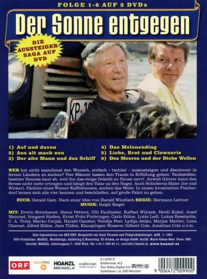 1) Auf und davon2) Aus alt mach neu3) Der alte Mann und das Schiff4) Das Melonending5) Liebe, Brot und Clownerie6) Des Meeres und der Diebe WellenWer hat nicht manchmal den Wunsch, einfach - tschüs! - auszusteigen und Abenteuer in fernen Ländern zu suchen? Viere Männer lassen den Traum in Erfüllung gehen: Tankstellenbesitzer Hannes haut ab, weil ihn das ewige Gekeife zu Hause nervt. Anwalt Günter kann den Stress nicht mehr ertragen und hängt den Talar an den Nagel. Auch Schickeria-Maler Joe und Wickerl, Pächter eines Wiener Kaffeehauses suchen das Weite. In einem kroatischenFischerdorf lernen sich alle vier kennen und beschließen, auf große Fahrt zu gehen.