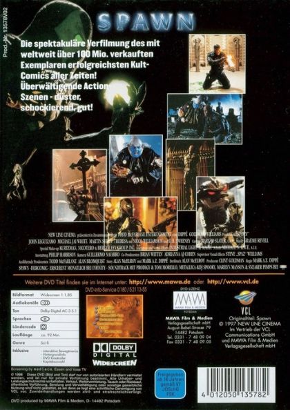 Bei einem Auftrag kommt der Superagent Simmons ums Leben, schließt jedoch mit dem Leibhaftigen einen Pakt. Unter der Bedingung, für die Verbreitung des Bösen zu kämpfen, darf Simmons zurück auf die Erde. Sein abstoßendes Äußeres verschreckt die Umwelt, doch er setzt die neugewonnenen Höllenkräfte nur für gute Zwecke ein. Die Comicgeschichte des Zeichners Todd McFarlane, in den USA der Renner, wird mit viel technischem Halligalli in Szene gesetzt. Die dickaufgetragenen Computereffekte erschaffen jedoch keine Vision einer anderen, düsteren Welt. Titelheld Spawn wird der Abgrund, die Seele, die tragische Größe schlicht wegdigitalisiert.Die spektakuläre Verfilmung des mit weltweit über 100 Mio. verkauften Exemplaren erfolgreichsten Kult-Comics aller Zeiten!Überwältigende Actionszenen-düster, schockierend,gut!
