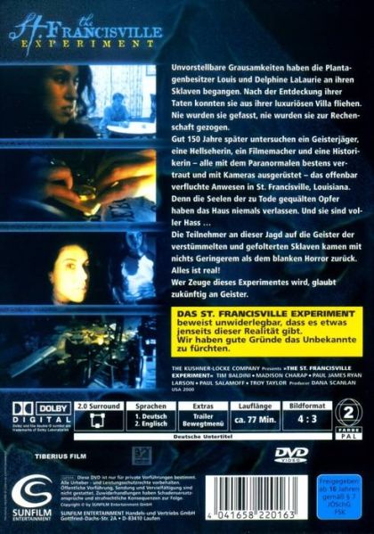 Unvorstellbare Grausamkeiten haben die Plantagenbesitzer Louis und Delphine LaLaurie an ihren Sklaven begangen. Nach der Entdeckung ihrer Taten konnten sie aus ihrer luxuriösen Villa fliehen. Nie wurden sie gefasst, nie wurden sie zur Rechenschaft gezogen.Gut 150 Jahre später untersuchen ein Geisterjäger, eine Hellseherin, ein Filmemacher und eine Historikerin - alle mit dem Paranormalen bestens vertraut und mit Kameras ausgerüstet - das offenbar verfluchte Anwesen in St. Francisville, Louisiana. Denn die Seelen der zu Tode gequälten Opfer haben das Haus niemals verlassen. Und sie sind voller Hass ...Die Teilnehmer an dieser Jagd auf die Geister der verstümmelten und gefolterten Sklaven kamen mit nichts Geringerem als dem blanken Horror zurück.Alles ist real!Wer Zeuge dieses Experiments wird, glaubt zukünftig an Geister.