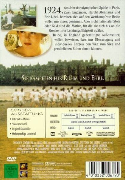 1924, das Jahr der olympischen Spiele in Paris. Zwei Engländer, Harold Abrahams und Eric Lidell, bereiten sich auf den Wettkampf vor. Beide wollen nur eines: gewinnen. Aber nicht nationaler Stolz oder Geld sind die Motive, für die sie sich bis an die Grenze ihrer Leistungsfähigkeit quälen.Beide, in England gedemütigte Aussenseiter, wollen beweisen, dass nur Überzeugung und individueller Ehrgeiz den Weg zum Sieg und persönlichen Ruhm ebnen können.