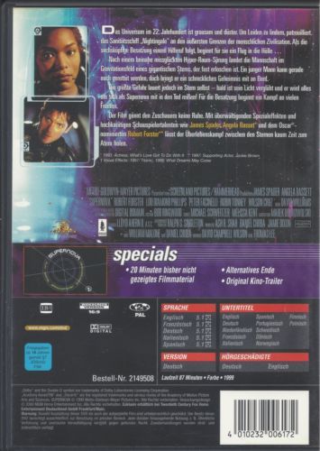 Das Universum im 22. Jahrhundert ist grausam und düster. Um Leiden zu lindern, patrouilliert das Sanitätsschiff "Nightingale" an den äußersten Grenzen der menschlichen Zivilisation. Als die sechsköpfige Besatzung einem Hilferuf folgt, beginnt für sie ein Flug in die Hölle ...Nach einem beinahe missglückten Hyper-Raum-Sprung landet die Mannschaft im Gravitationsfeld eines gigantischen Sterns, der fast erloschen ist. Ein junger Mann kann gerade noch gerettet werden, doch bringt er ein schreckliches Geheimnis mit an Bord.Die größte Gefahr lauert jedoch im Stern selbst – bald ist sein Licht verglüht und er wird alles um sich als Supernova mit in den Tod reißen! Für die Besatzung beginnt ein Kampf an vielen Fronten.Der Film gönnt den Zuschauern keine Ruhe. Mit überwältigenden Spezialeffekten und hochkarätigen Schauspielertalenten wie James Spader, Angela Basset* und dem Oscar®-nominierten Robert Forster** lässt der Überlebenskampf zwischen den Sternen kaum Zeit zum Atem holen.* 1993: Actress, What's Love Got To Do With It ** 1997: Supporting Actor, Jackie Brown