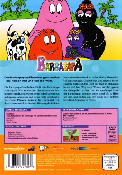 Die Barbapapa-Familie beschließt, eine Forschungsreise um die Welt zu machen. Gemeinsam mit dem kleinen Hund Lolita erleben sie auf jeder Station neue, aufregende Abenteuer und lernen viele unbekannte Tiere und Pflanzen kennen: Im Dschungel von Sumatra veranstalten sie einen Stierkampf mit einem Nashorn, erschrecken in den Rocky Mountains vor kekssüchtige Grizzlybären und erleben die unendliche Kälte auf dem Dach der Welt im Himalaya - bis sie auf dem Weg nach Westen auf die Spuren der Goldgräber stoßen. Die Verwandlungskünste der Barbapapas kommen Ihnen dabei oft zu Hilfe, um sich und andere aus der einen oder anderen brenzligen Situation zu retten...