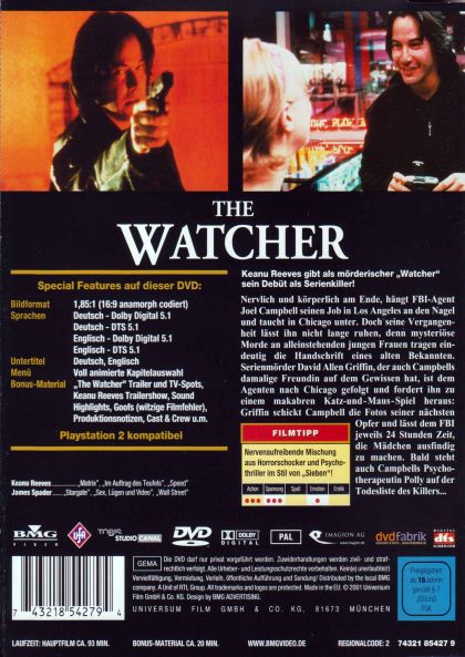 Keanu Reeves gibt als mörderischer "Watcher" sein Debüt als Serienkiller!Nervlich und körperlich am Ende, hängt FBI-Agent Joel Campbell seinen Job in Los Angeles an den Nagel und taucht in Chicago unter. Doch seine Vergangenheit lässt ihn nicht lange ruhen, denn mysteriöse Morde an alleinstehenden jungen Frauen tragen eindeutig die Handschrift eines alten Bekannten. Serienmörder David Allen Griffin, der auch Campbells damalige Freundin auf dem Gewissen hat, ist dem Agenten nach Chicago gefolgt und fordert ihn zu einem makabren Katz-und-Maus-Spiel heraus: Griffin schickt Campbell die Fotos seiner nächsten Opfer und lässt dem FBI jeweils 24 Stunden Zeit, die Mädchen ausfindig zu machen. Bald steht auch Campbells Psychotherapeutin Polly auf der Todesliste des Killers...