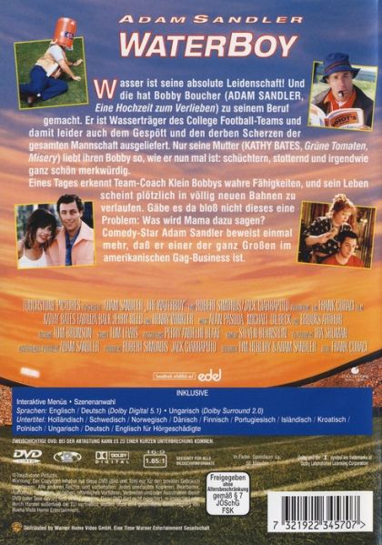Wasser ist seine absolute Leidenschaft! Und die hat Bobby Boucher (ADAM SANDLER, Eine Hochzeit zum Verlieben) zu seinem Beruf gemacht. Er ist Wasserträger des College-Football-Teams und damit leider auch dem Gespött und den derben Scherzen der gesamten Mannschaft ausgeliefert. Nur seine Mutter (KATHY BATES, Grüne Tomaten, Misery) liebt ihren Bobby so, wie er nun mal ist: schüchern, stotternd und irgendwie ganz schön merkwürdig.Eines Tages erkennt Team-Coach Klein Bobbys wahre Fähigkeiten, und sein Leben scheint plötzlich in völlig neuen Bahnen zu verlaufen. Gäbe es da bloß nicht dieses eine Problem: Was wird Mama dazu sagen?Comedy-Star Adam Sandler beweist einmal mehr, dass er einer der ganz Grossen im amerkanischen Gag-Business ist.