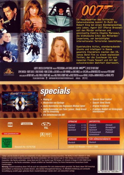 Im Hauptquartier des britischen Geheimdienstes kommt Öl-Multi Sir Robert King bei einem Bombenanschlag ums Leben. Agent 007 (Pierce Brosnan) soll den Mörder entlarven und gleichzeitig Elektra (Sophie Marceau), die bildhübsche Erbin des Milliarden-Imperiums, vor berüchtigten internationalen Terroristen beschützen.Spektakuläre Action, atemberaubende Stunts und intelligent in Szene gesetzte Charaktere machen den 19. James Bond Film zu einem explosiven Thriller, der die Zuschauer bis zum rasanten Finale fesselt und mit der schockierenden Wahrheit überrascht.